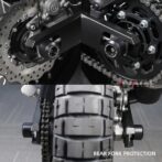 - 2002XJR1300に装着しました。オーリンスの正立フロントフォークで+純正アクスルシャフト周りで前後ともに問題なく装着できています。締め上げ座が線接触になるので緩みは気にかけた方が良いと思われます。自分はまだ1000kmですが緩みはありません。プロテクターとしての効果は未転倒ですので効果は不明です^_^